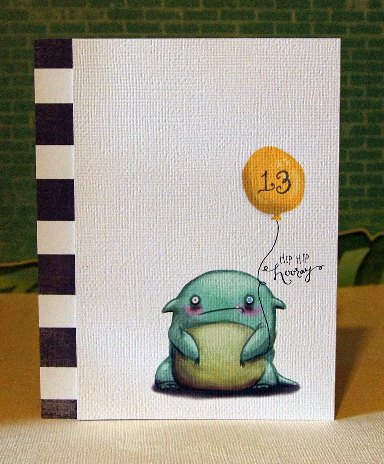 A one layer card - Jase drew the little animal for me and and I added the balloon and text in PS.